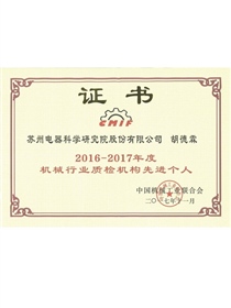 • 2016-2017年度機械行業質檢機構先進個人