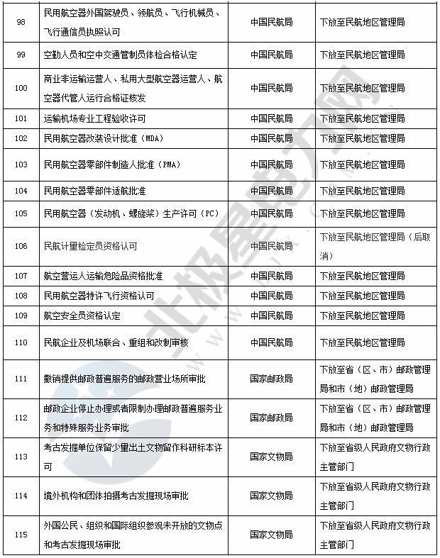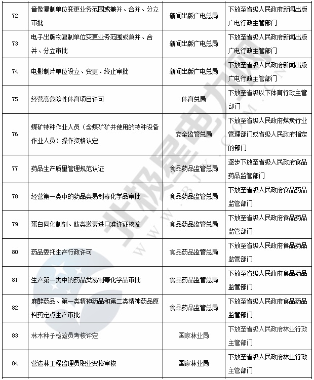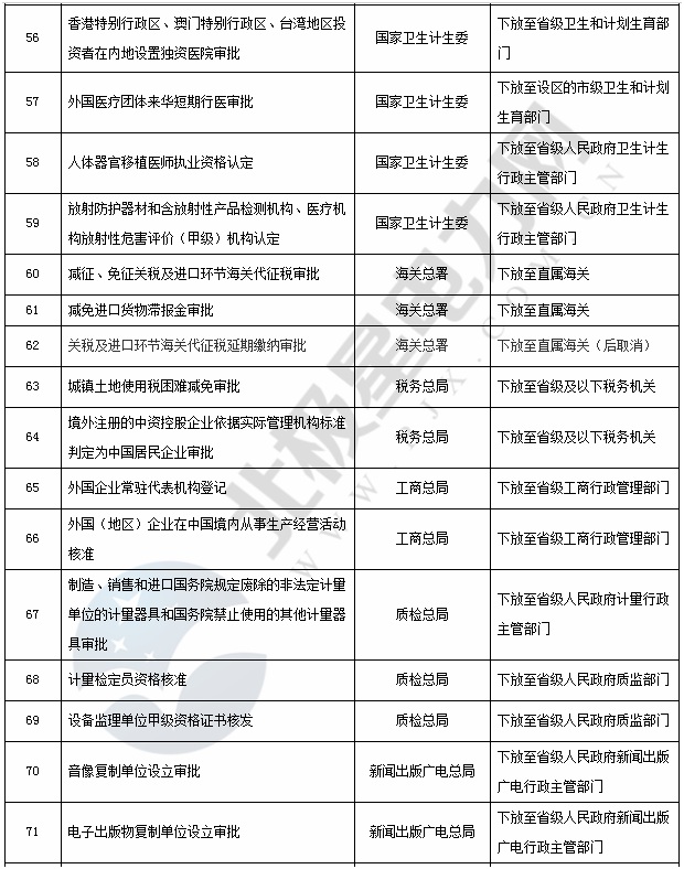 國務院已公布下放的行政審批事項